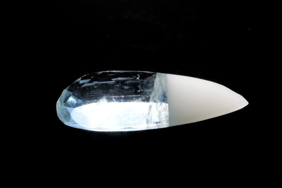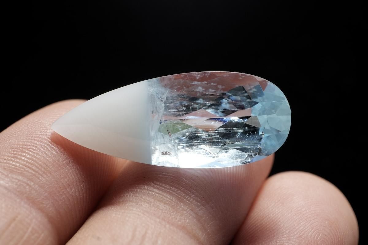 日陰の際に見えるアクアマリンの深みのある色合いは、太陽光の下とは違った美しい色合いを備えています。