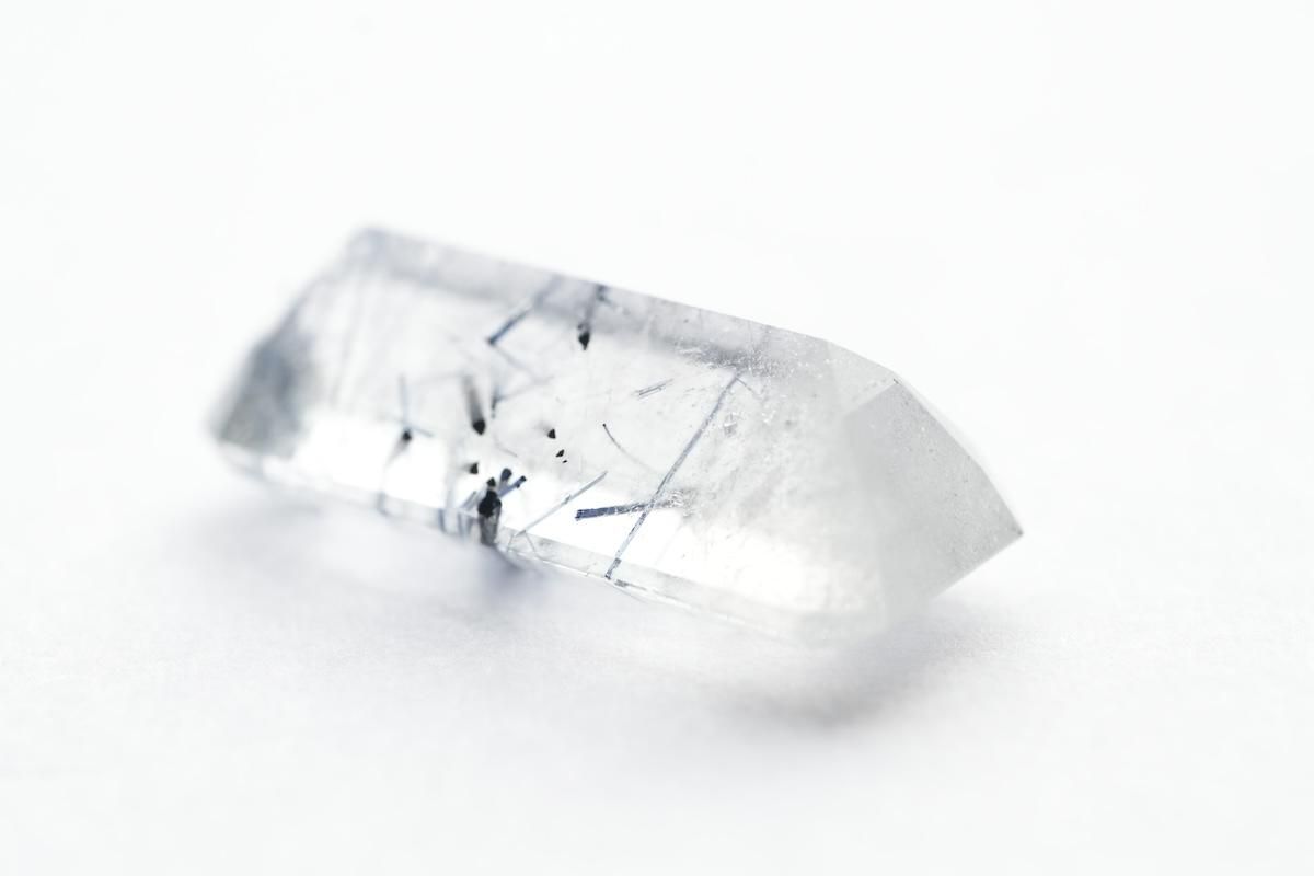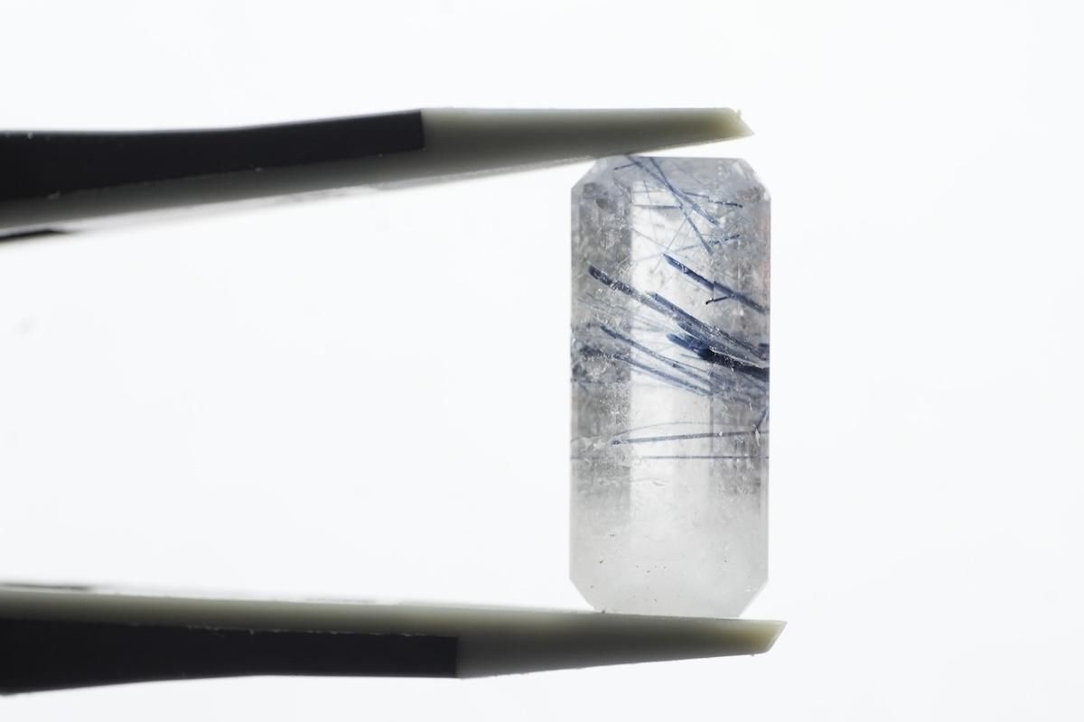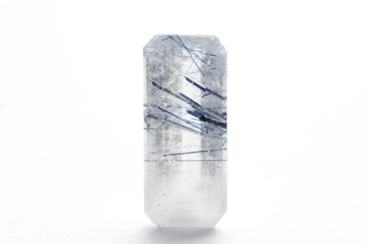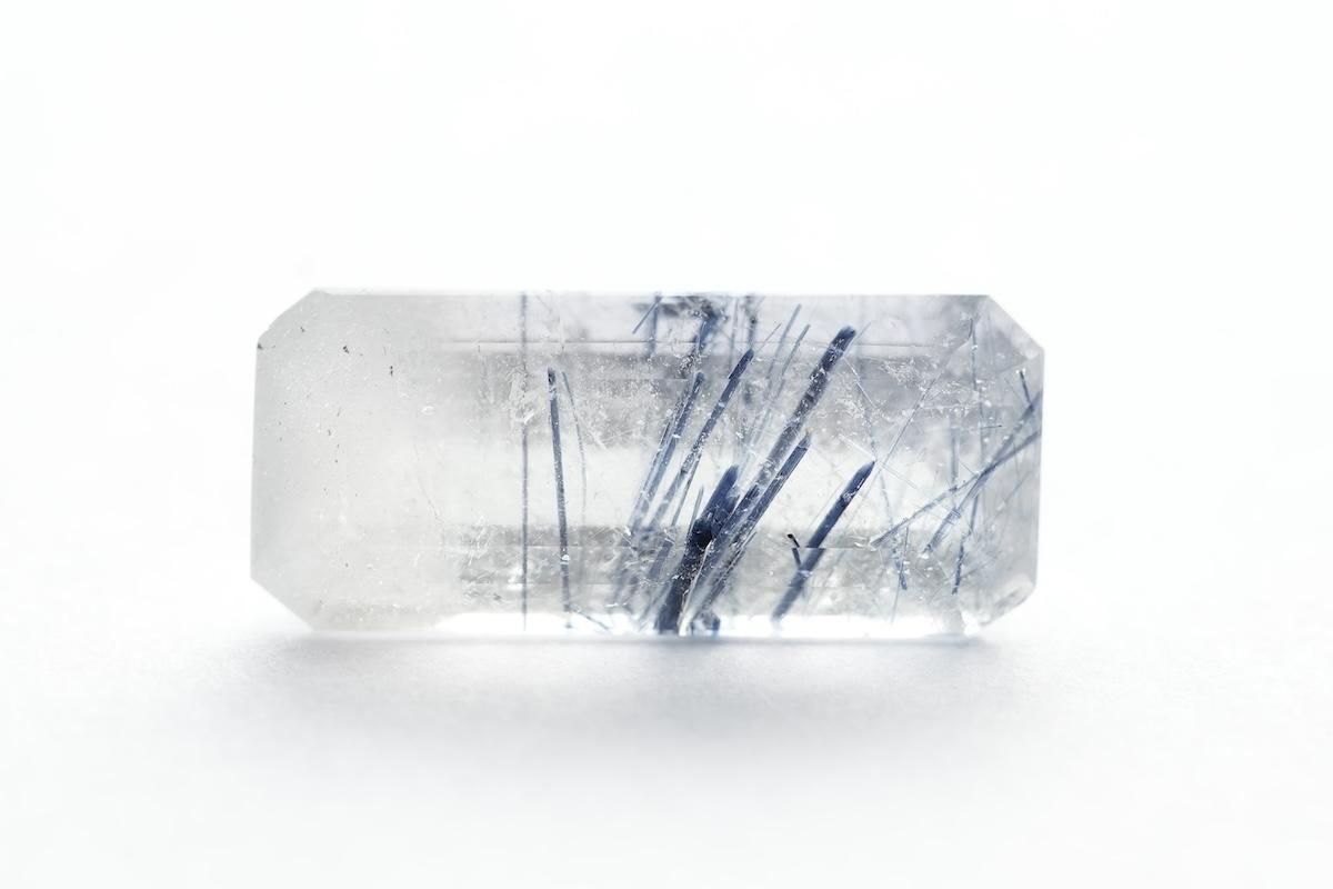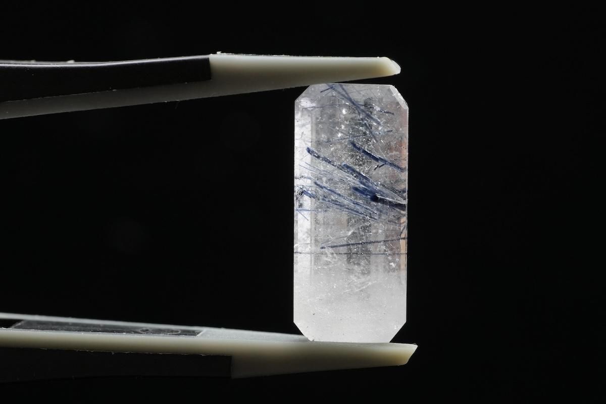 透明度の高い水晶にブルートルマリンの針状結晶が内包された