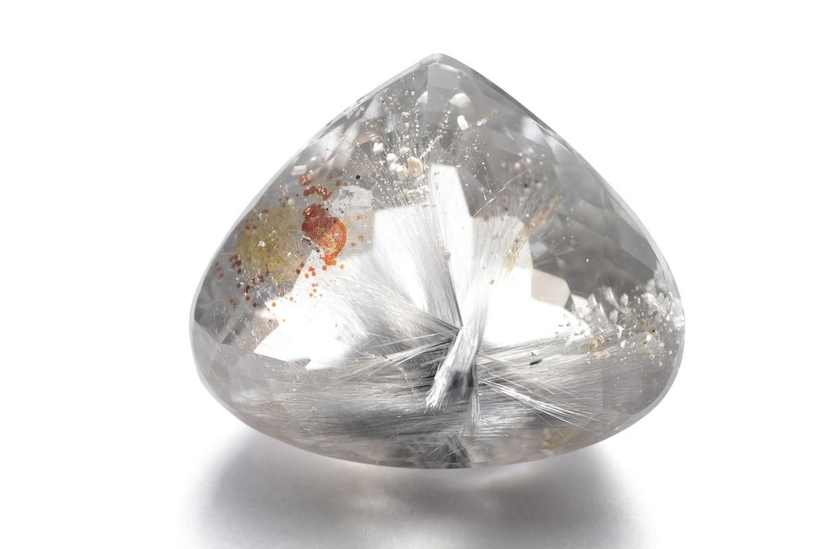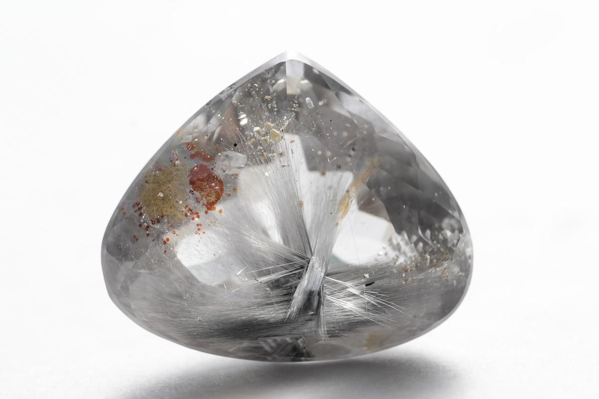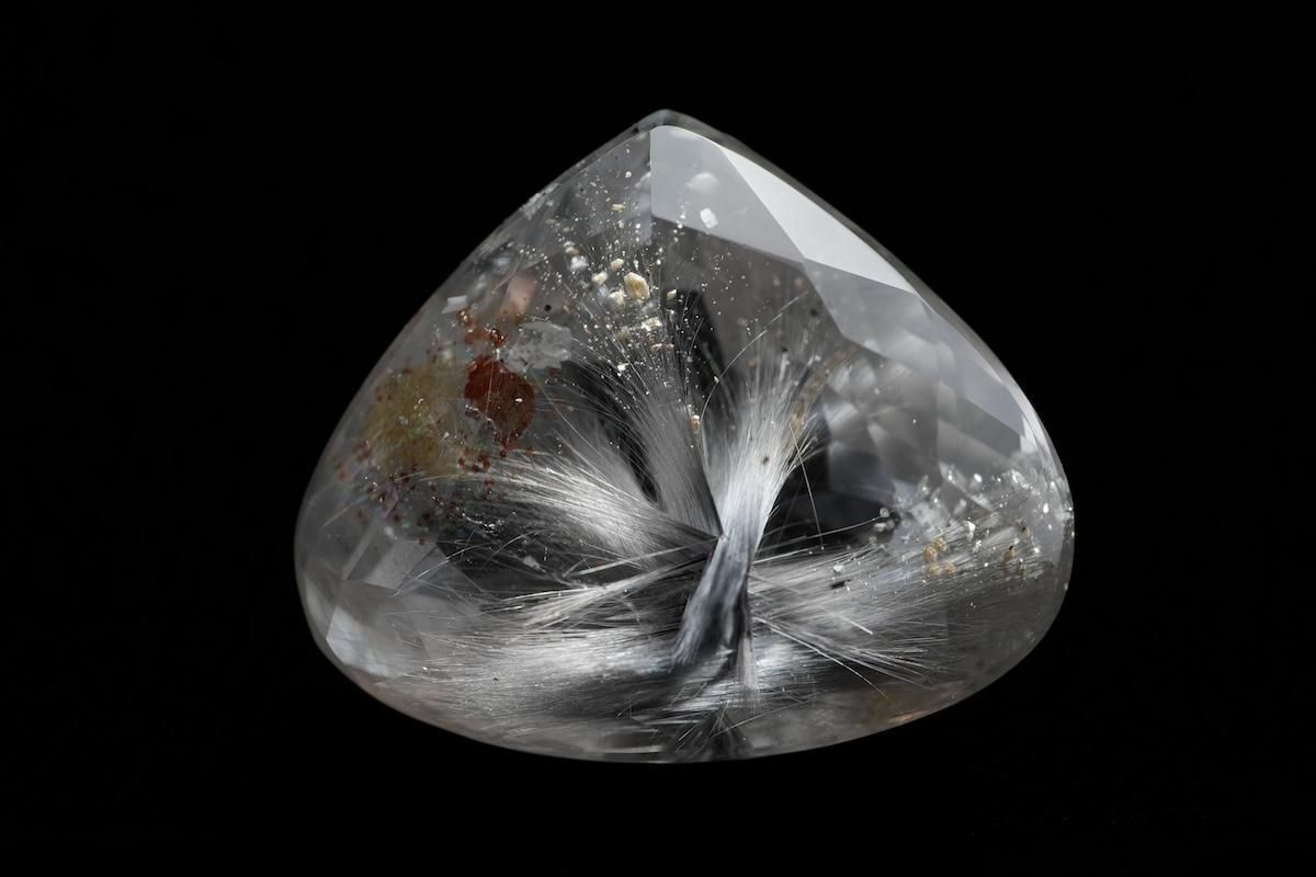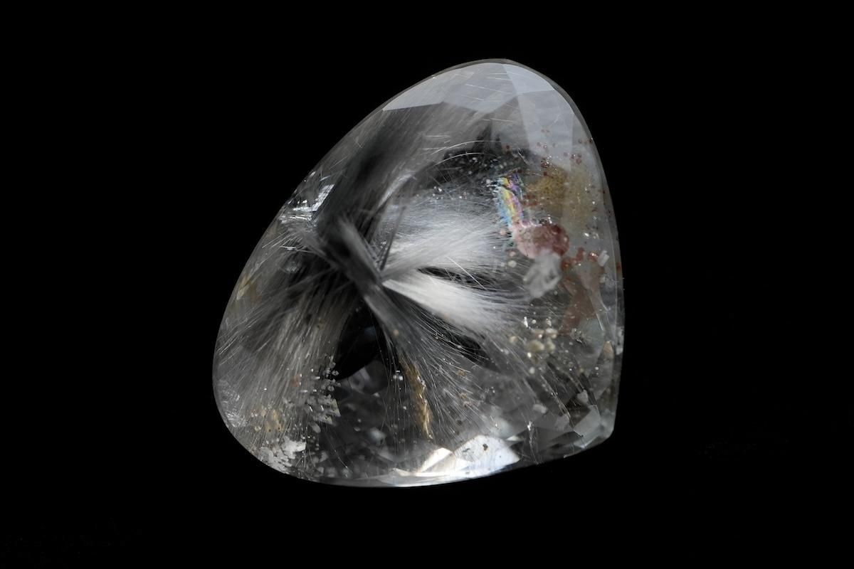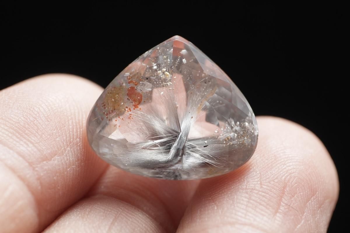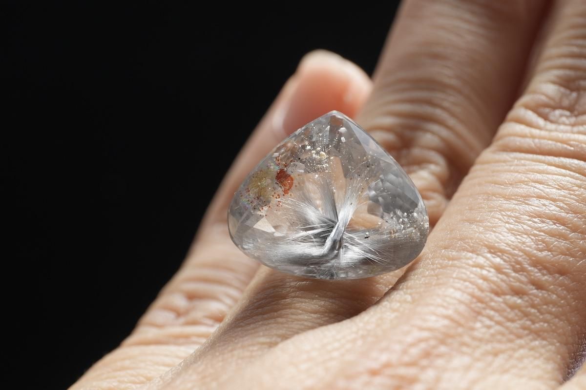 美しいファセットカットに相まってきらめく水晶の質の良さ。