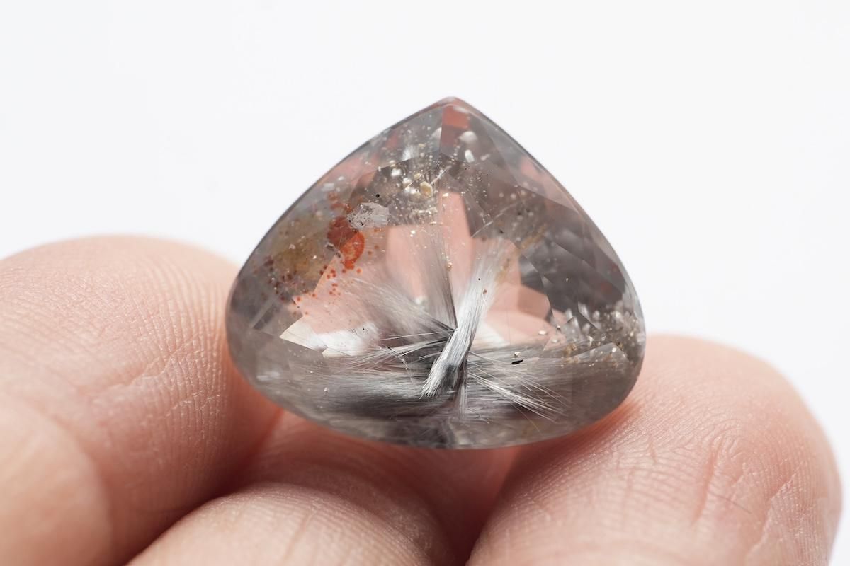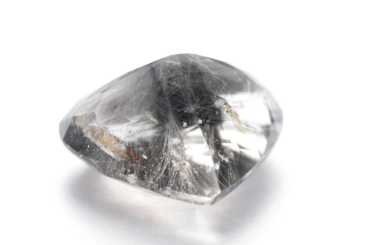プラチナ色のルチルが包有した上品で凛とした雰囲気を感じさせる逸品です。