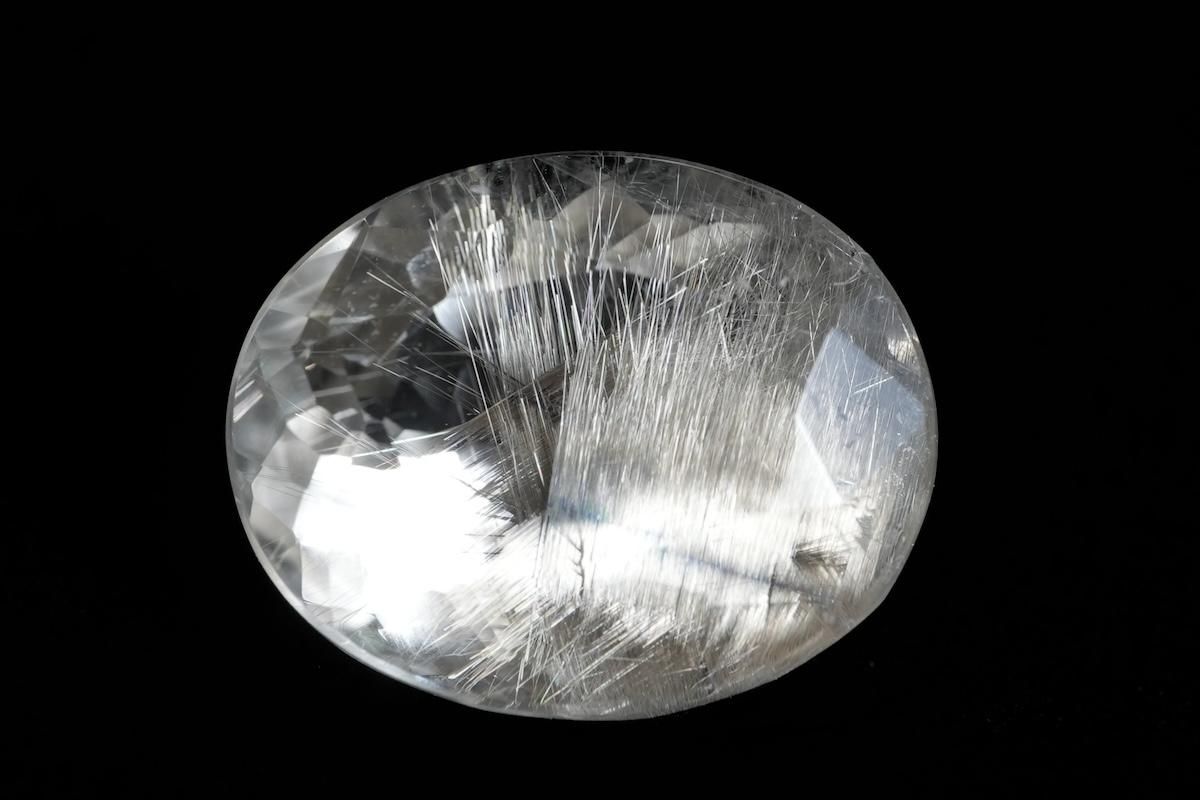 プラチナ色のルチルが包有した上品で凛とした雰囲気を感じさせる逸品です。