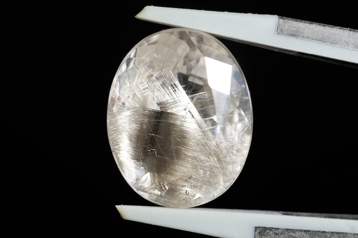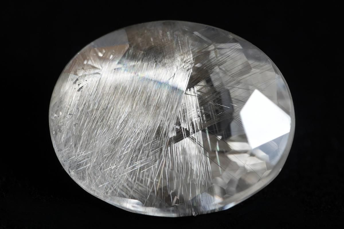 美しいファセットカットに相まってきらめく水晶の質の良さ。