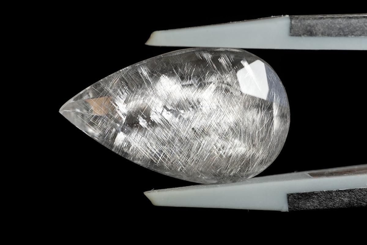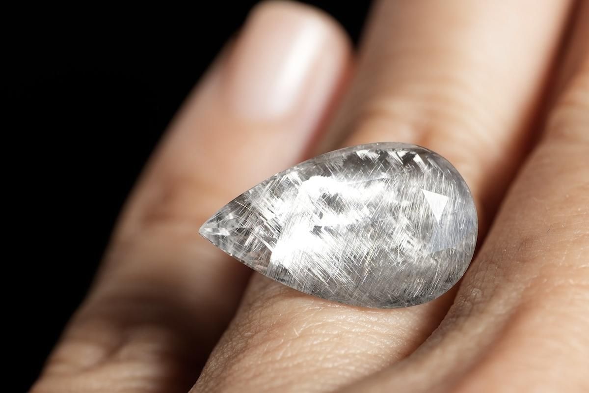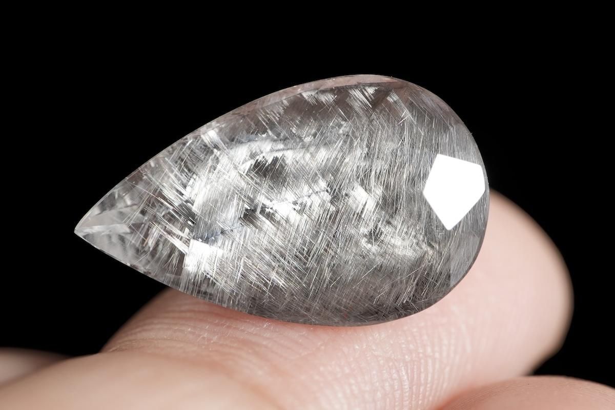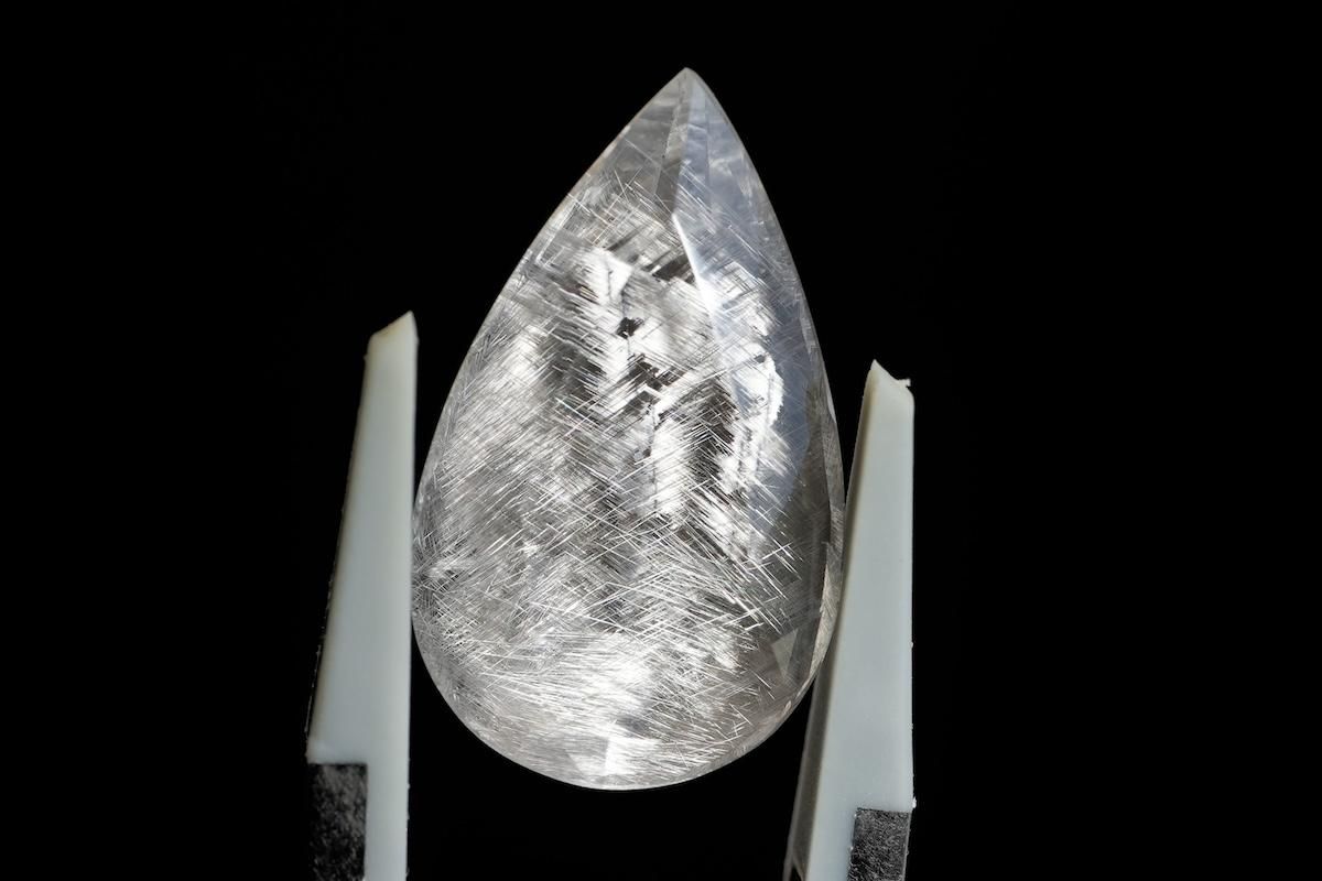 美しいファセットカットに相まってきらめく水晶の質の良さ。